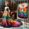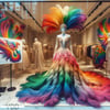 "Feathered Pride Couture" is a captivating digital art series showcasing stunning couture dresses adorned with vibrant feathers, celebrating the diversity and colors of Pride Month. Each piece embodies the elegance, boldness, and spirit of the LGBTQ+ community.