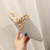 Half trailer shiny rhinestone flat heeled Muller shoes for women's sandals and slippers