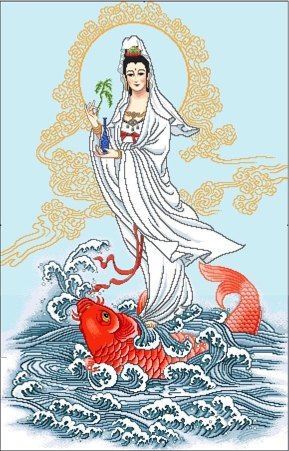 Asian Goddess on Koi - Cross Stitch Downloadable PDF Pattern