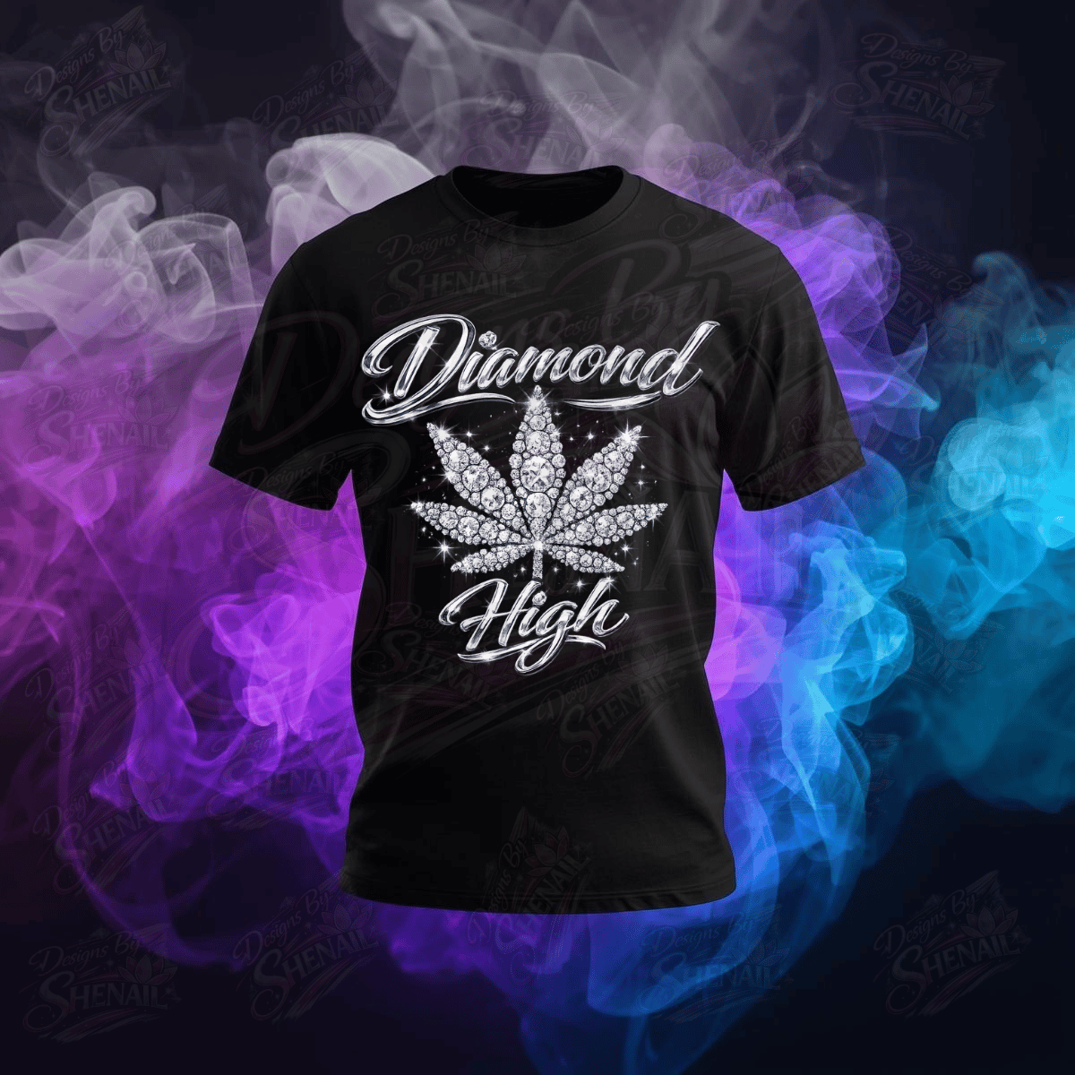 Turn heads with this bold and luxurious “Diamond High” design, featuring a sparkling, rhinestone-style cannabis leaf paired with sleek chrome script lettering. This design blends edgy street style with high-end glam for a look that’s both flashy and unapologetic. Perfect for creators who love statement pieces with shine, this design delivers a premium aesthetic that pops on apparel and accessories. The diamond texture effect gives it that iced-out, luxury vibe your customers will love.