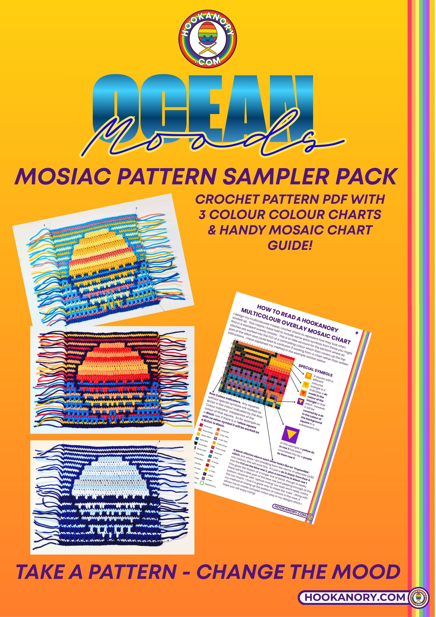 The samples in this pattern pack were originally designed to accompany my presentation on colour theory In mosaic crochet “Mosaic Crochet- Colour Theory Into Practise” as part of the Mosaic Crochet Summit Hosted By Erin Toews from Juniper & Oakes.