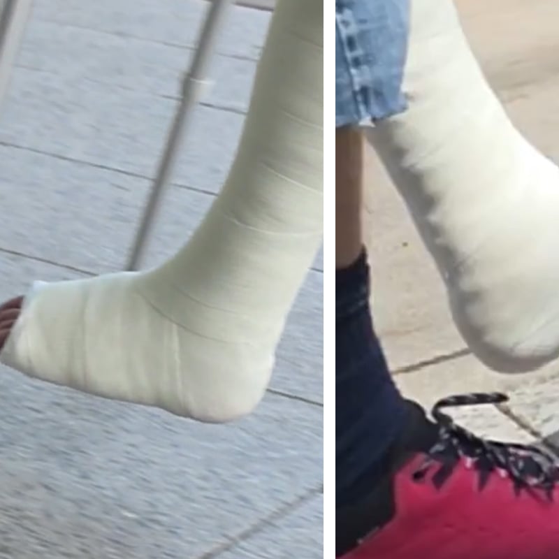 This gentleman has a closed fiber SLC on his lower leg and comes to his follow-up appointment on crutches. Unfortunately, his face is rarely visible, but he is on crutches the entire time.