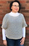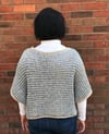 The “Marbled vest” is a cropped vest with a lot of positive ease. For the stitch patterns, I picked up the two-color brioche stitch for the front and the Single Tuck stitch for the back. The vest is worked side to side. The front of the vest has strong horizontal lines while the back exhibits a checkered pattern that resembles the careful tile work of an artist. While the brioche stitch pattern is very stretchy the tuck stitch pattern makes the fabric denser. The silk/wool Ginkgo yarn by “Berroco” makes the vest light and drapey. If you want to substitute the yarn, think about a drapey yarn such as alpaca/wool, silk/wool blend.