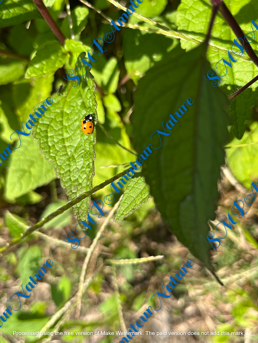 Amateur photograph of a Seven Spotted Lady Beetle (Coccinella septempunctata) on a leaf. Image taken in Virginia, USA. Image pixels 3024x4032. Image easily resized as required for buyer needs. Purchase gives image without any watermark.