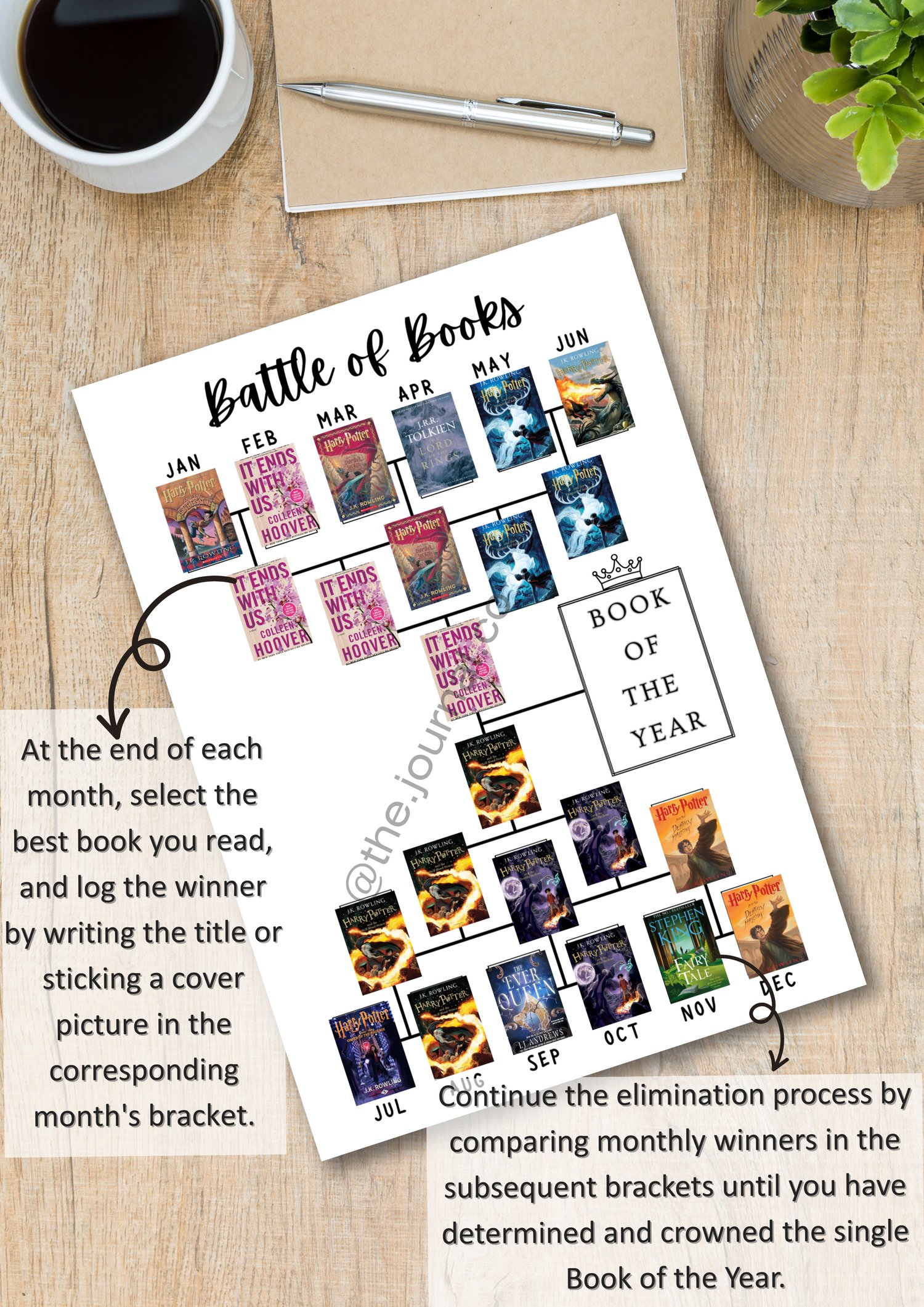- Features a 12-slot challenge (one for each month) to ultimately determine the "Book of the Year".