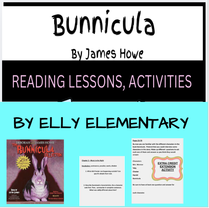 This ELA resources packet includes vocabulary words and comprehension questions for each chapter of Bunnicula by James Howe. The book can be read as a read-aloud as well as read individually. These activities can enhance students' reading comprehension, vocabulary, critical thinking, and creativity while engaging them in the world of Bunnicula.