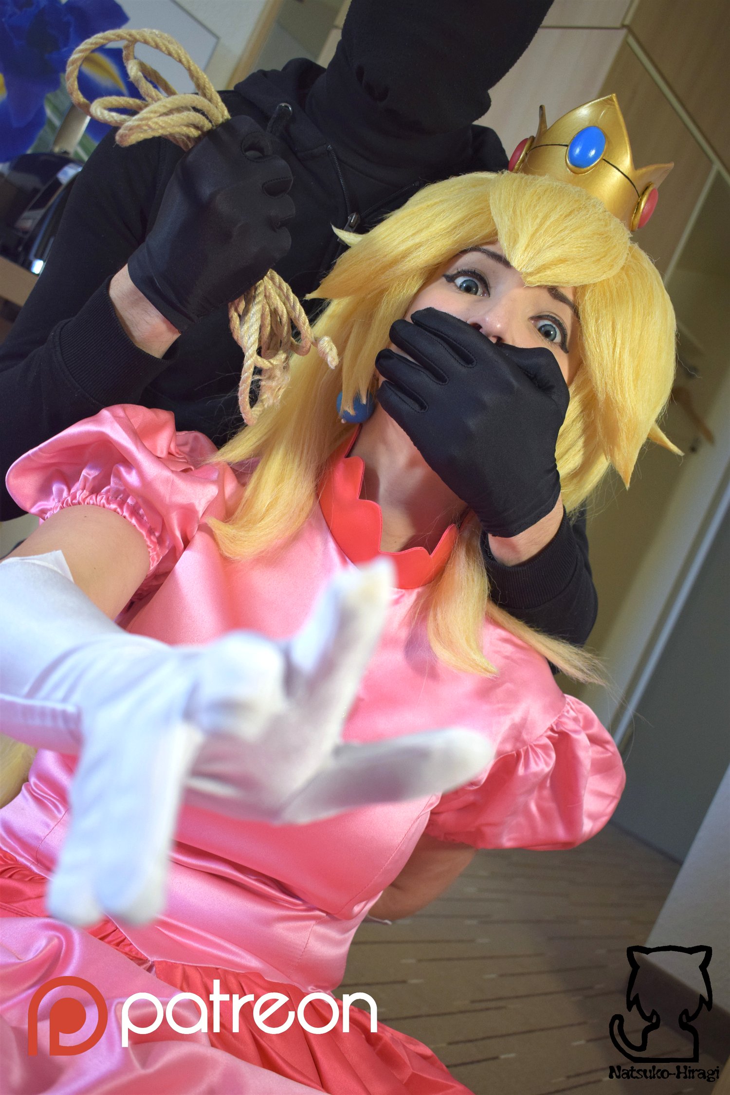 Kitty cosplaying as: Princess Peach