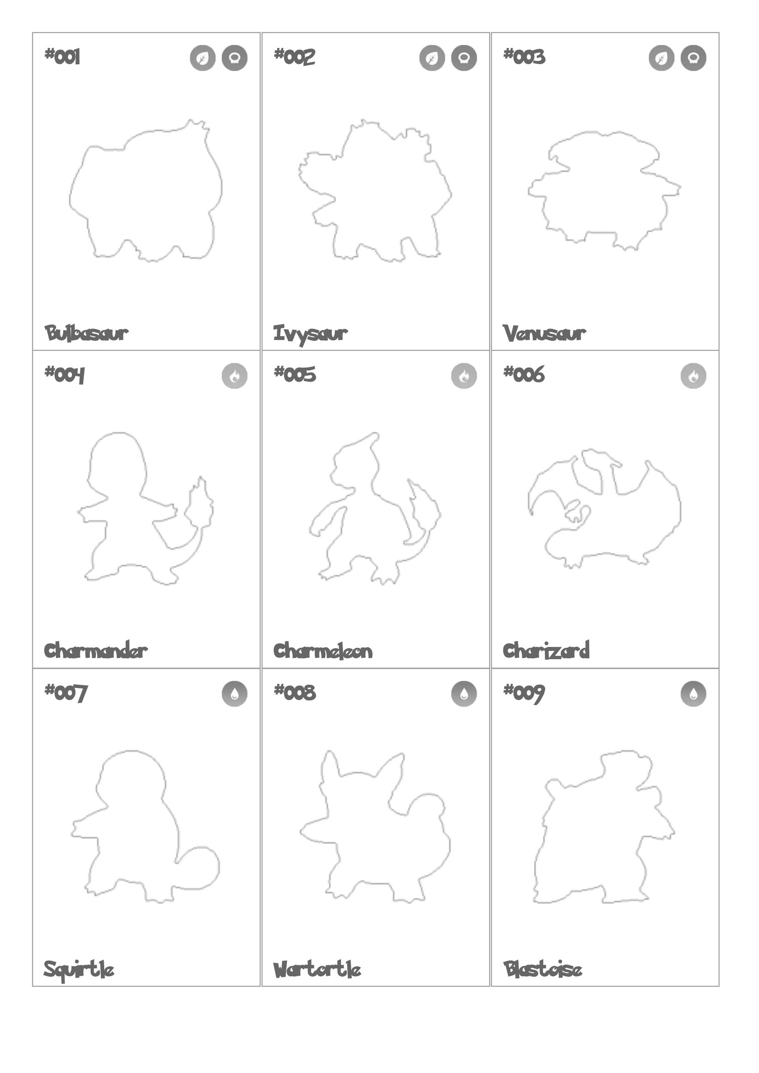 All 1025 Pokémons in a black silouhette design. Perfect for collectors who prefer a classic look. 114 pages, 3x3 cards by pages, poke card sized. A4 format, do not resize/scale.