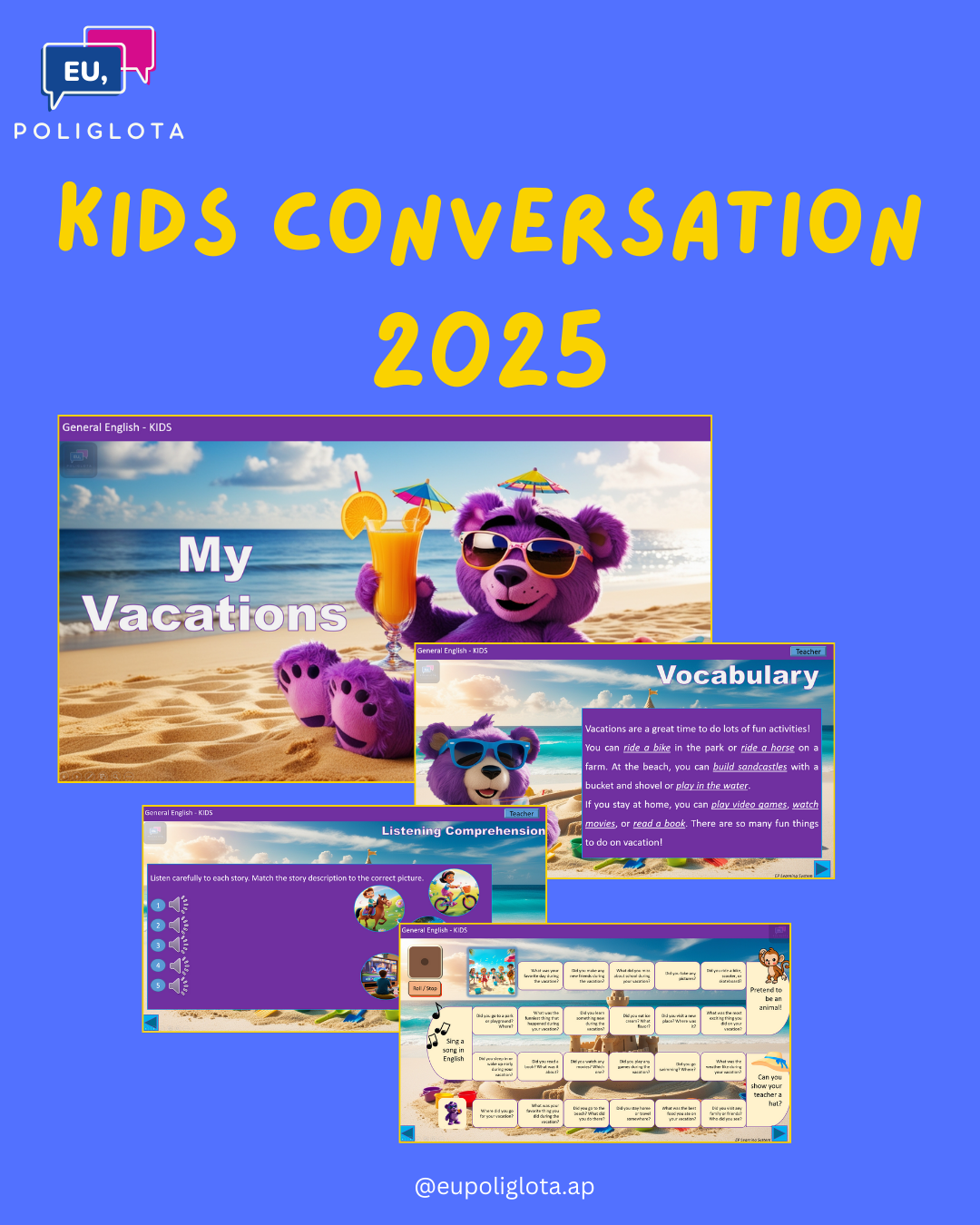 With a colorful beach theme, children will practice vocabulary about vacations, activities, and engage in a fun conversational game