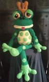 Meet Prince Puddles the Frog – the happiest little hopper in the pond! With his bright eyes, cheeky smile, and royal attitude, this green cutie is always up for an adventure (or a splash in a puddle). Whether he's lounging on a lily pad or waiting for his royal kiss, Prince Puddles is sure to leap straight into your heart!