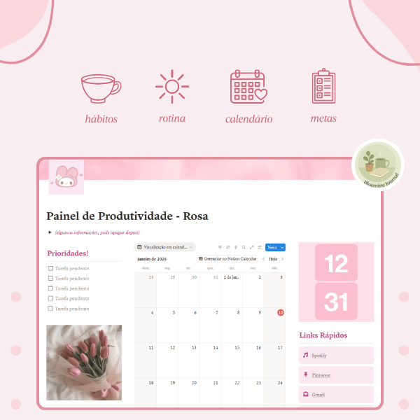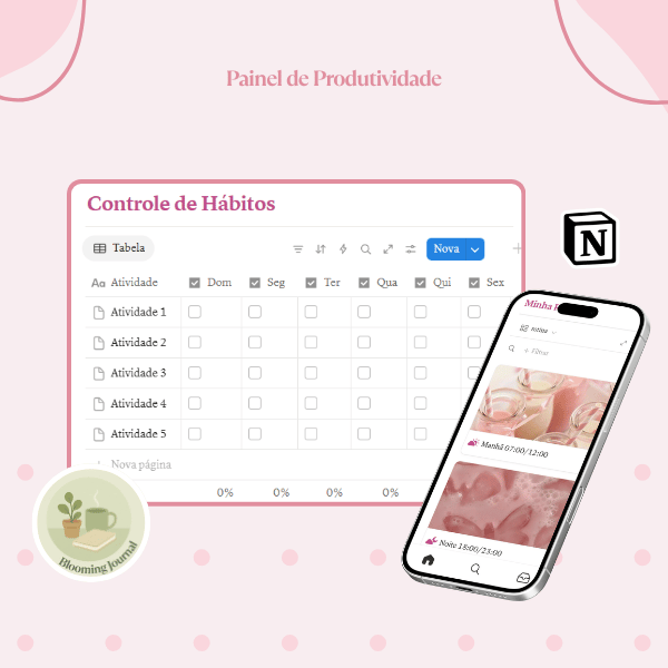 Aqui você encontra um espaço no Notion para acompanhar tarefas, metas e hábitos do dia a dia de forma simples e organizada!
