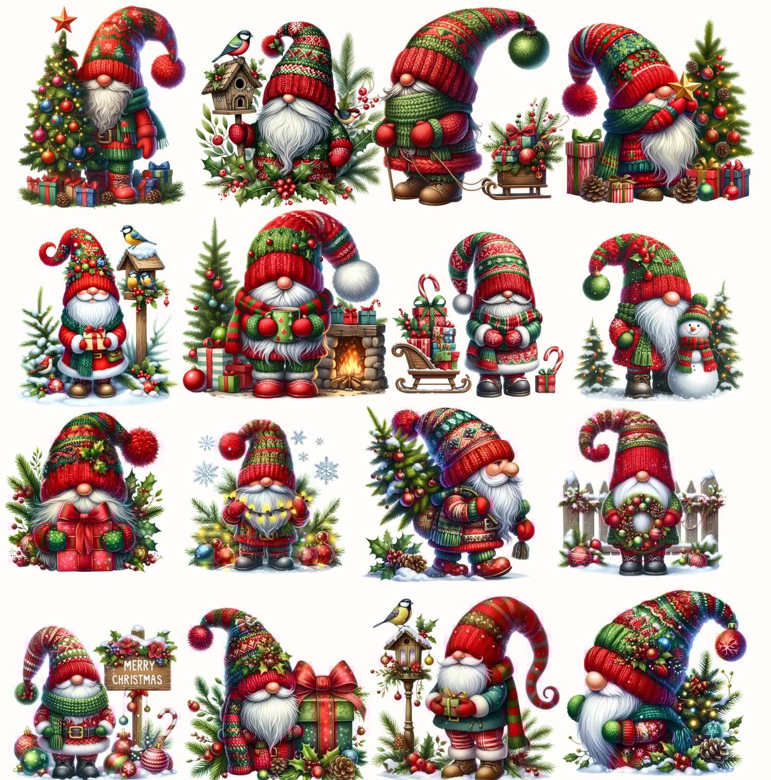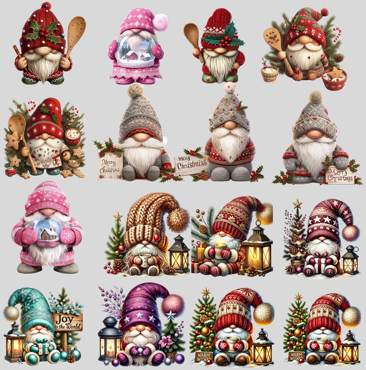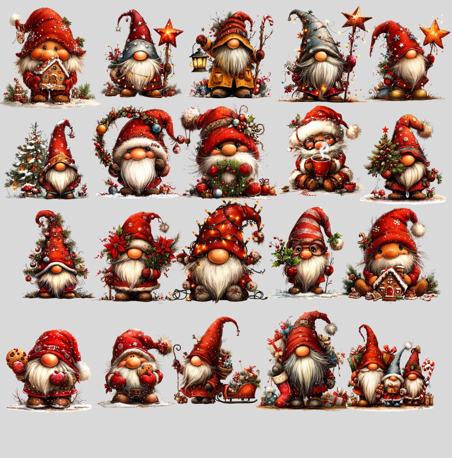 110 individual Watercolor Witch Gnome PNGs