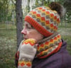 This warm and cozy cowl is decorated with stranded colorwork in a diamond and zigzag pattern which is simple yet striking. The cowl is sized so that it can be looped double around the neck for extra warmth. Whether worn on its own or with the coordinating hat and fingerless mitts, it's the perfect accessory for those chilly autumn days!
