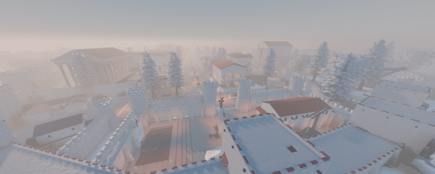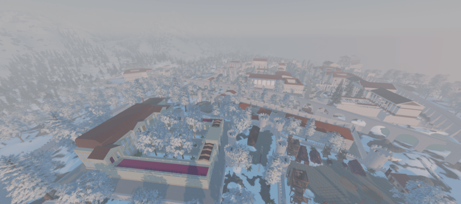 Great terrain and snowy region immersive setup. City has a good layout however does have basic models. Good use of terrain and foliage throughout the city so that's a +.