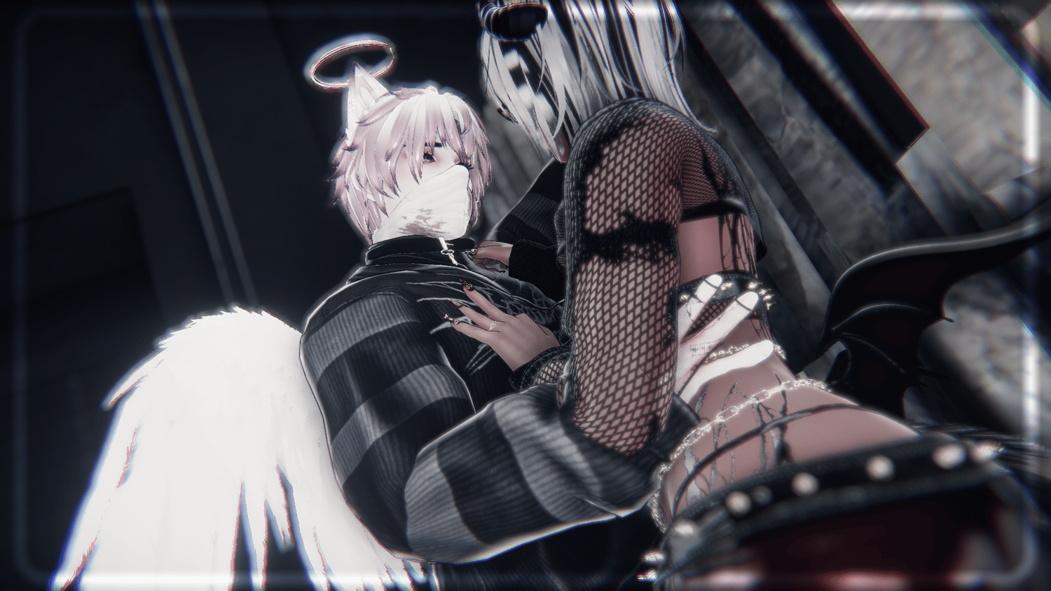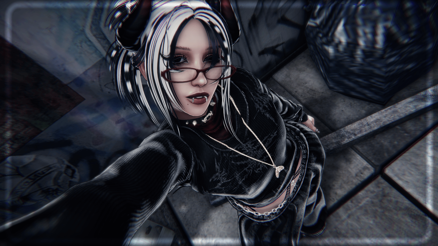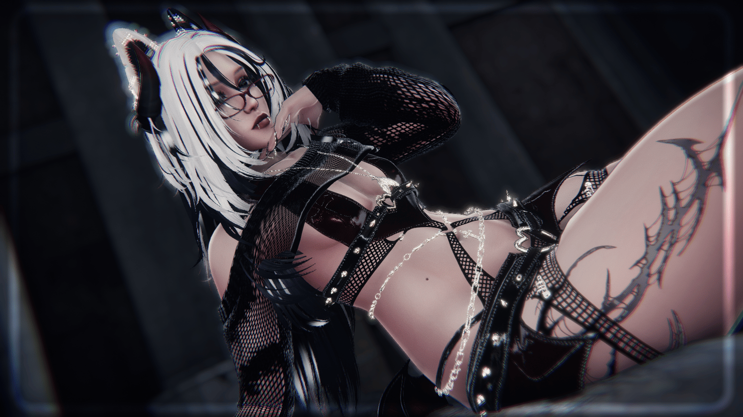 VRBase by Zinpia ・ Athena Head, Cross Pasties by Xero3D ・ SkinnyGlasses by Nessy! ・ Matcaps, Icons by AWMI ・ Hair Tex by CicieaaaVR ・ Flows by GM'sbox ・ Hair Matcap by Pirranhaz ・ Isla's Hair, Ichika's Hair, Suzume's Hair, Cici Texture Edits by Saikura ・ Kira's Messy Bun by Tink3D ・ Kitty Gang, Crimson Care by Vinuzhka ・ S4d G1rl Set by Miriaaam ・ [FILE://RΞDA͠C͜ŦΞD] Tattoos by SmolUni ・ Miss Me Nails by Suki ・ EdgySet by Bunisu3D ・ Boots Metal Hands by Sebs ・ Grungefit by BruceVR ・ Heartbreaker Set by Catakitty ・ Lighter Palm & Sole Addon by PinkyChan ・ Heartforged Demon Wing & Tail Set by The Thicc Witch ・ Scarlett Hotdog by ScarlettKat ・ Scarlett Hotdog Textures by Senespera