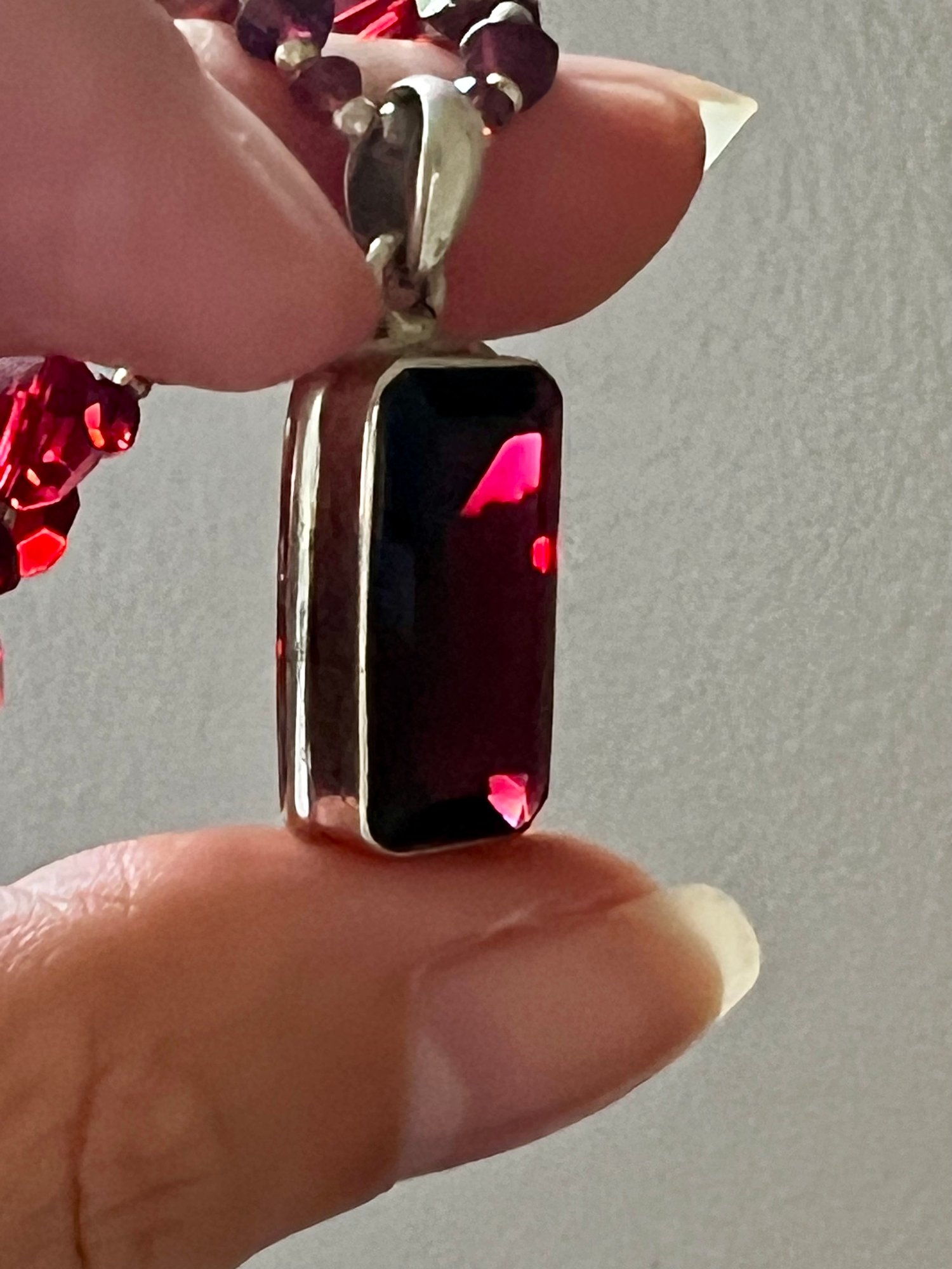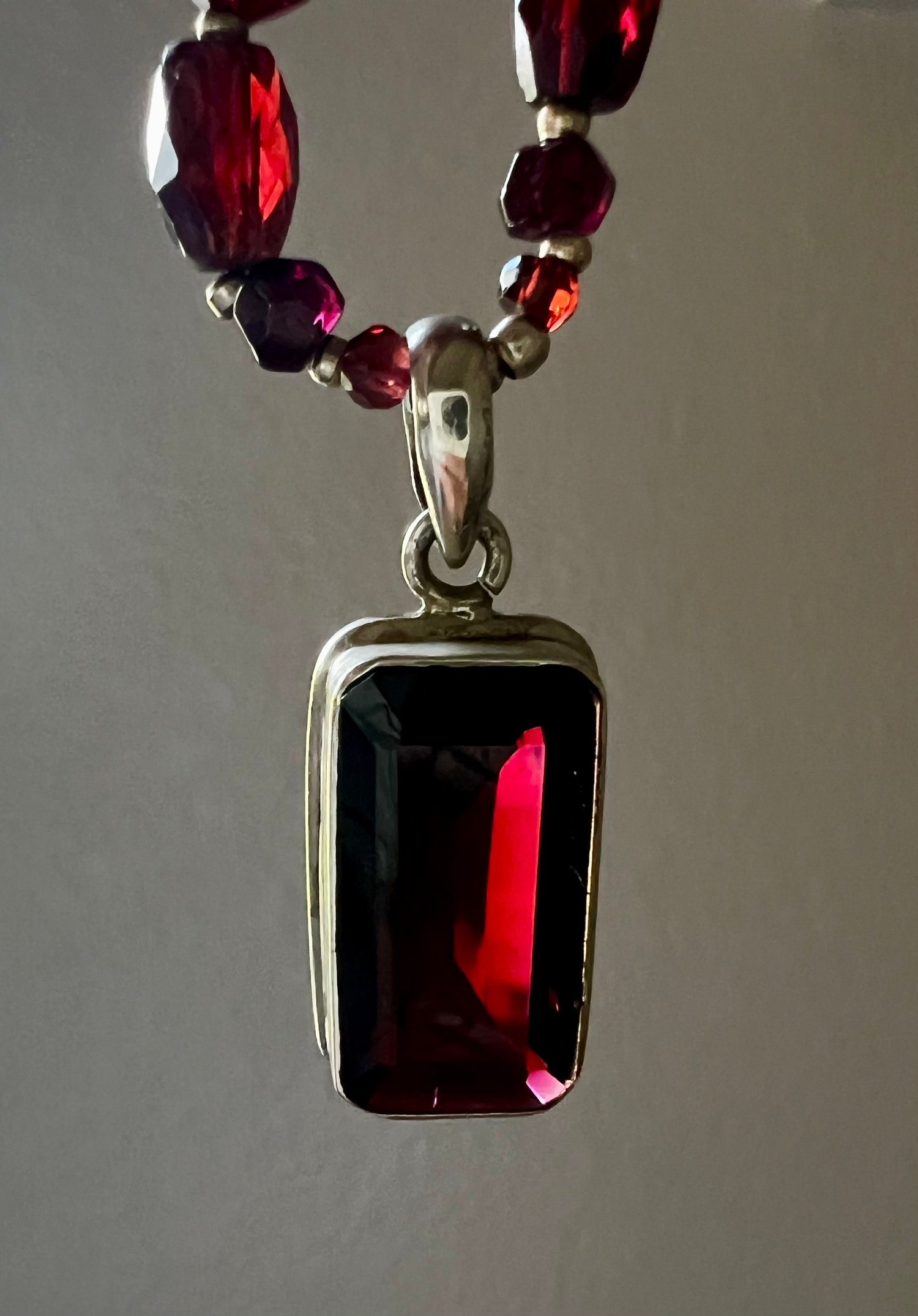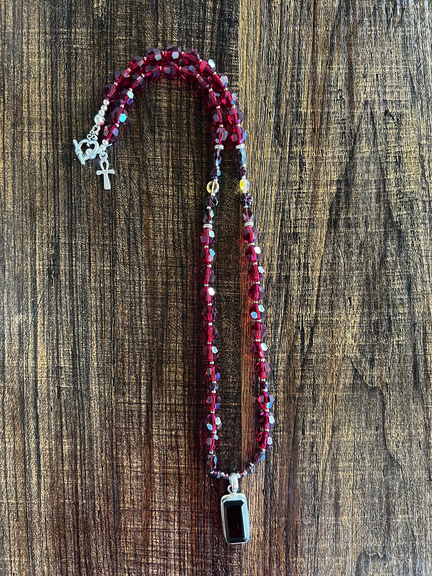 Mala Strand is a combination of Swarovski beads, garnets, rubies, citrine and Garnet Pendant.