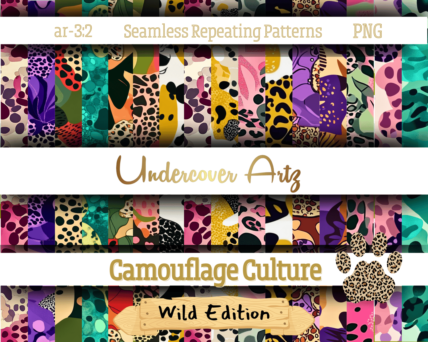 Unleash the untamed! The Camouflage Culture: Wild Edition blends the rugged edge of camo with the fierce beauty of leopard print in one bold, unapologetic collection. Whether you're designing apparel, accessories, or digital artwork, these seamless repeating patterns will bring your creations to life with a wild twist.