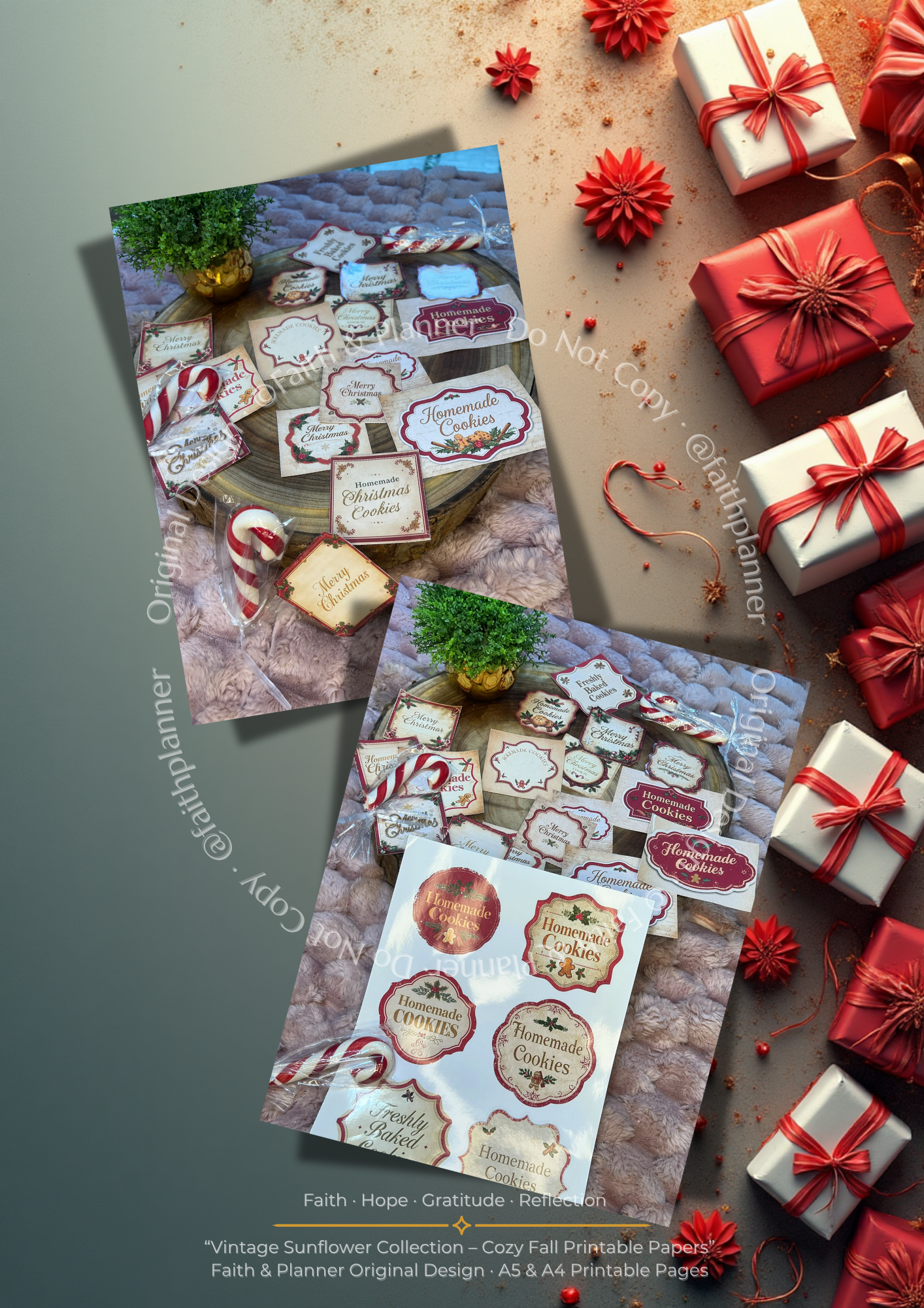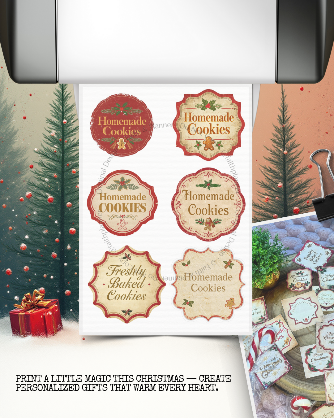 Download this free printable sticker sheet (A4) with Merry Christmas / Homemade / Cookies labels — perfect for gift wrapping, cookie boxes, cards, scrapbooking and holiday packages.