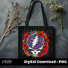 Scarlet Begonias Grateful Dead Stealie Clipart | Psychedelic Rainbow Splatter Skull Logo | Digital Download PNG for Sublimation & Crafts