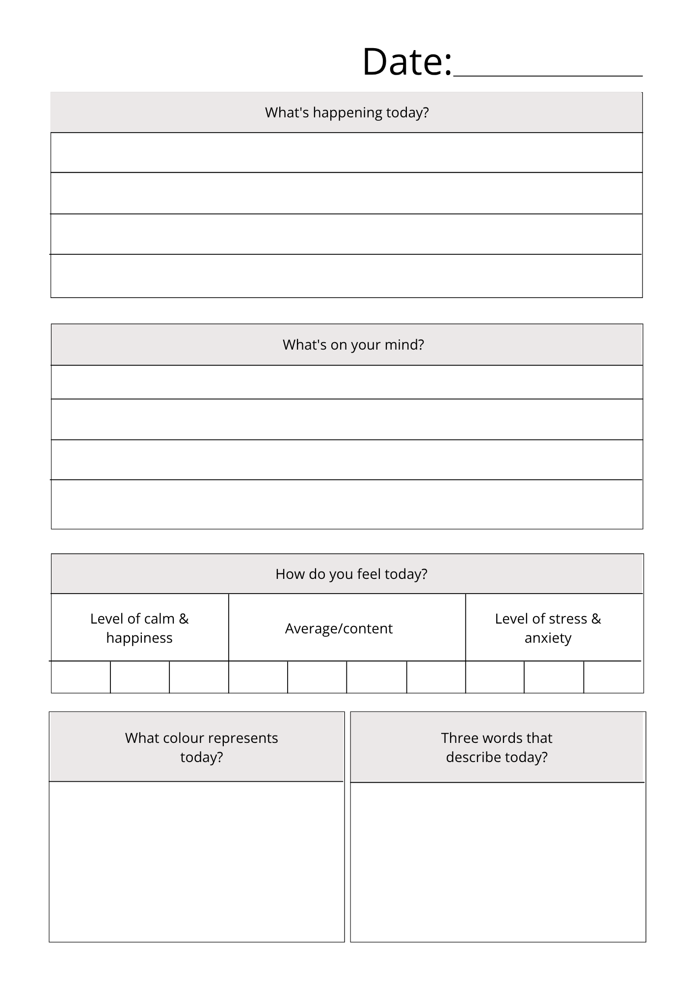 – Daily reflection pages for mindfulness and gratitude