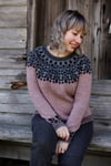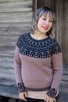A simple sweater with adorable flower colorwork on the yoke and cuffs.