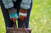 The original yarn is a fingering weight sock yarn. It has a long and slow colour gradient. Ombré and gradient yarns would be a perfect substitute for a similar look. Solid coloured yarns may also be used and you could have some fun stash diving for the entrelac section.