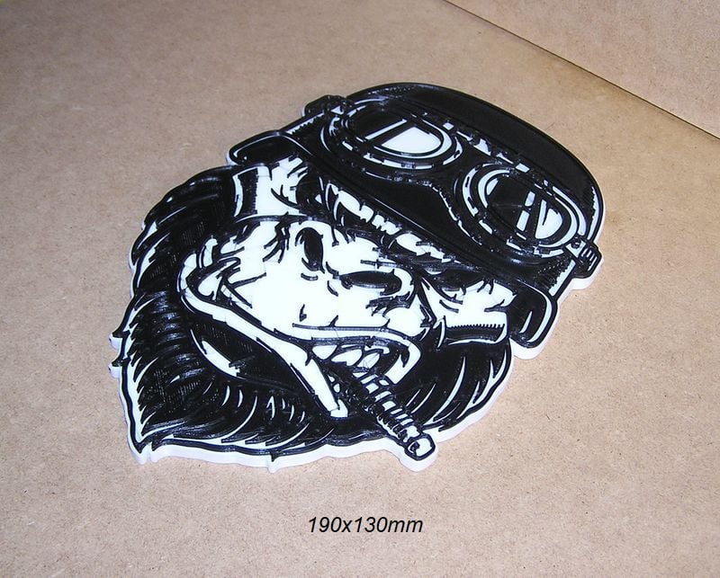 Poster, gorilla logo biker helmet, these STL and Gcode files have been created to be printed in various colors with any FDM type printer. The color changes have been made with the Elegoo Neptune 3 Pro printer, but they can be printed on any printer.
