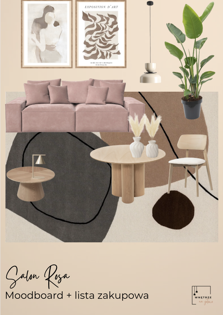 Rosa Moodboard + Lista Zakupowa + Ebook "Jak dobierać kolory do wnętrz - Przewodnik dla harmonijnych przestrzeni"