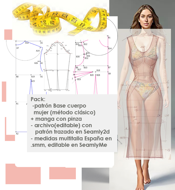 patrón Base cuerpo mujer método clásico con manga con pinza