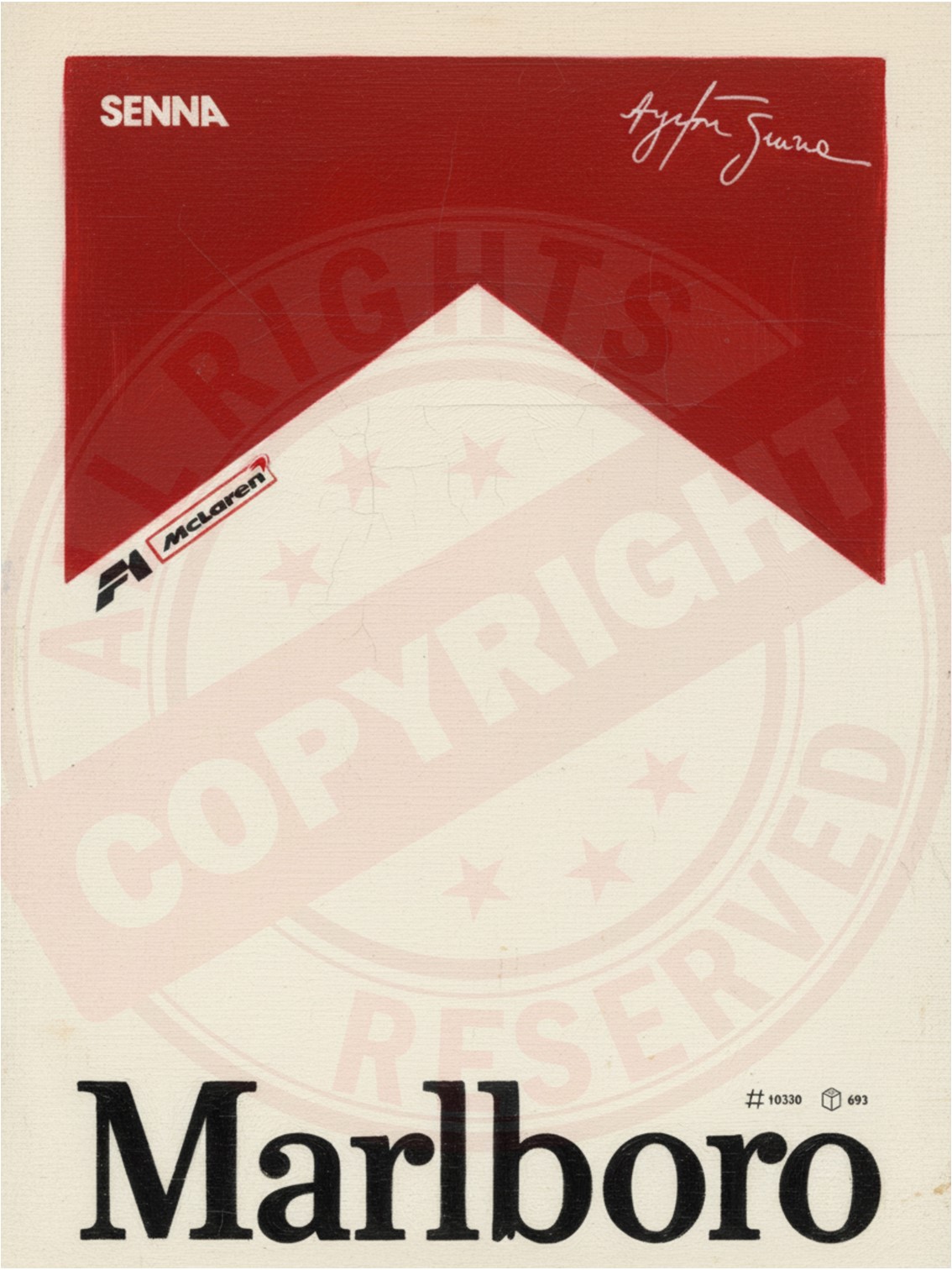 Affiche texturée façon toile peinte vintage (30x40 cm) compatible LEGO – McLaren MP4/4 Ayrton Senna (#10330)