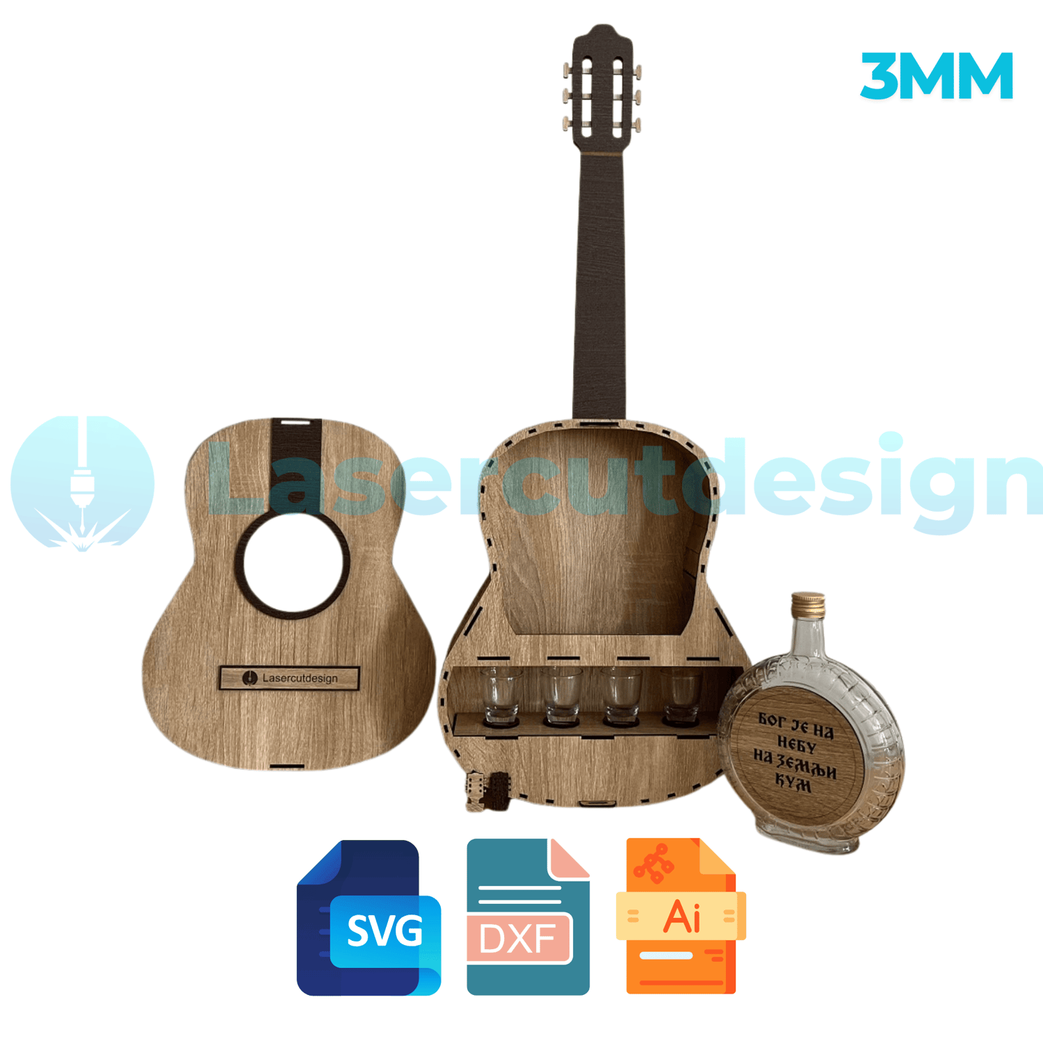 Portable Mini-bar Guitar - Portable Mini Bar Files for Laser Cut I Mini bar | Mini Bar Pattern Gift | Files For Engraving 3 MM