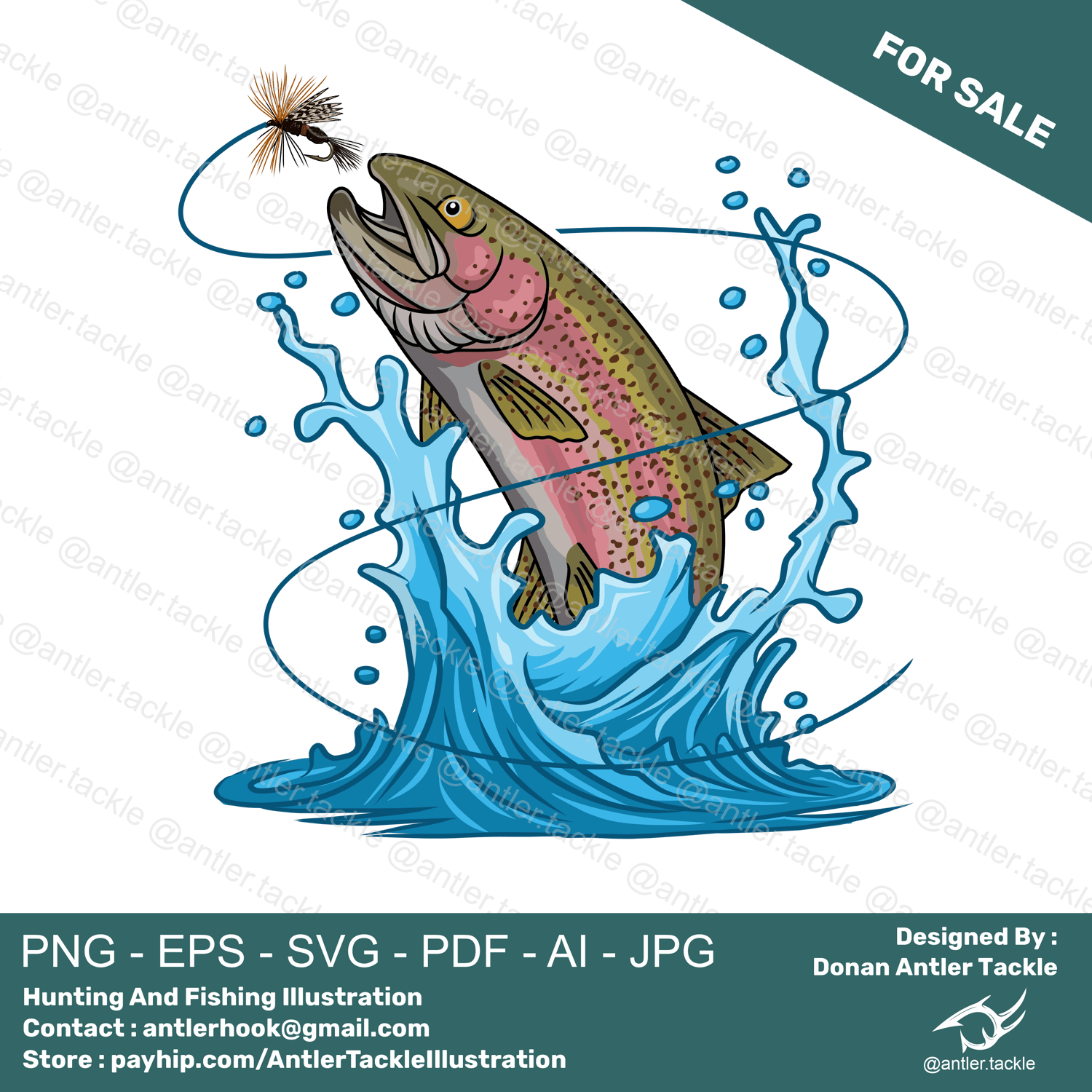 Trout Fish Fly Fishing Illustration Logo Exclusive License Designed By Donan Antler Tackle