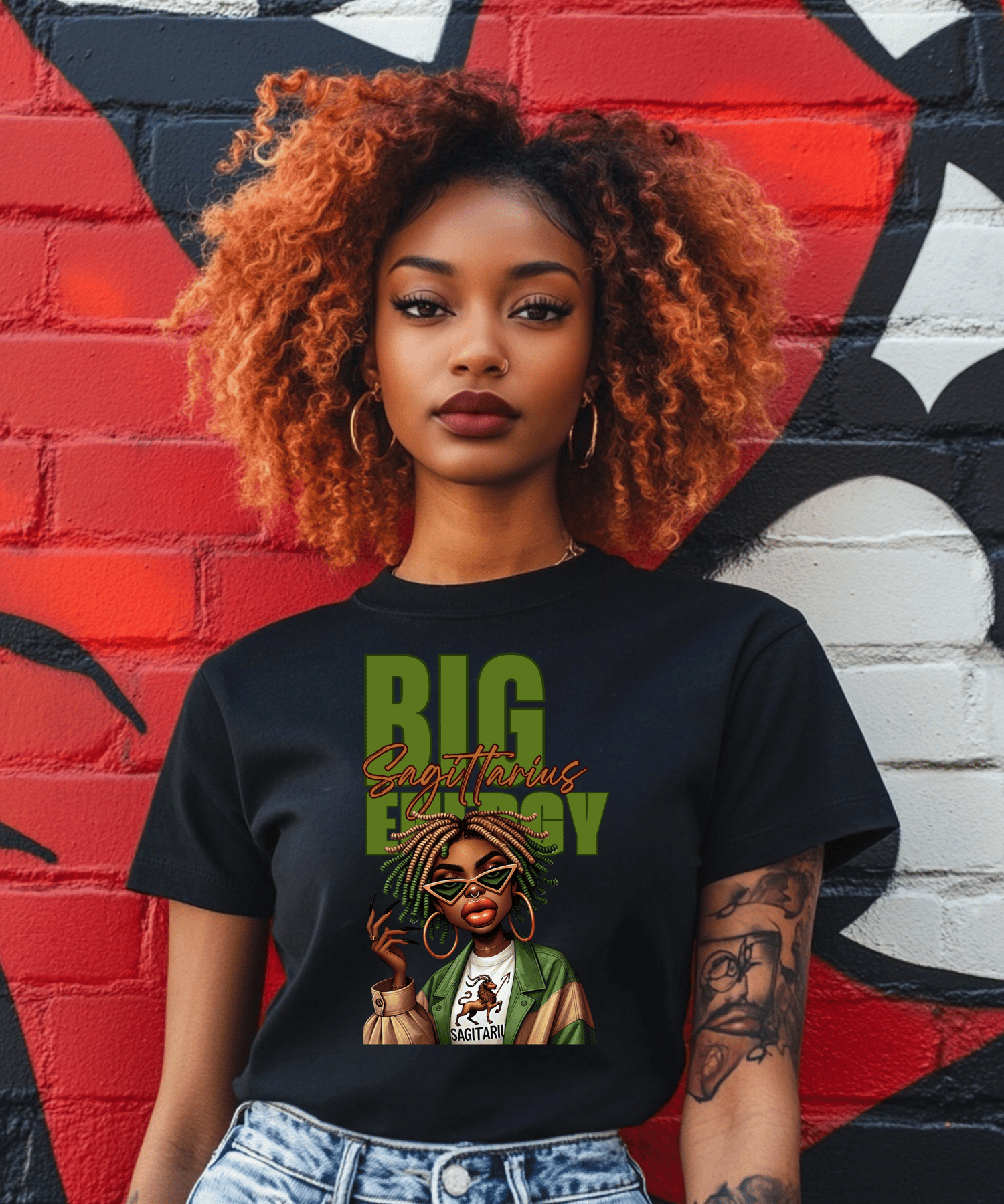Bring bold zodiac vibes to life with this Big Sagittarius Energy digital design! Featuring a confident Afro girl in green and orange, this 12x12" PNG is perfect for making statement pieces with your favorite Sagittarius flair.
