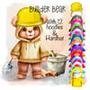 Cute teddy bear business logo, builder/bricklayer bear, main graphic plus 12 hoodies, mix n match. Sublimation, print, personalise. PNG.