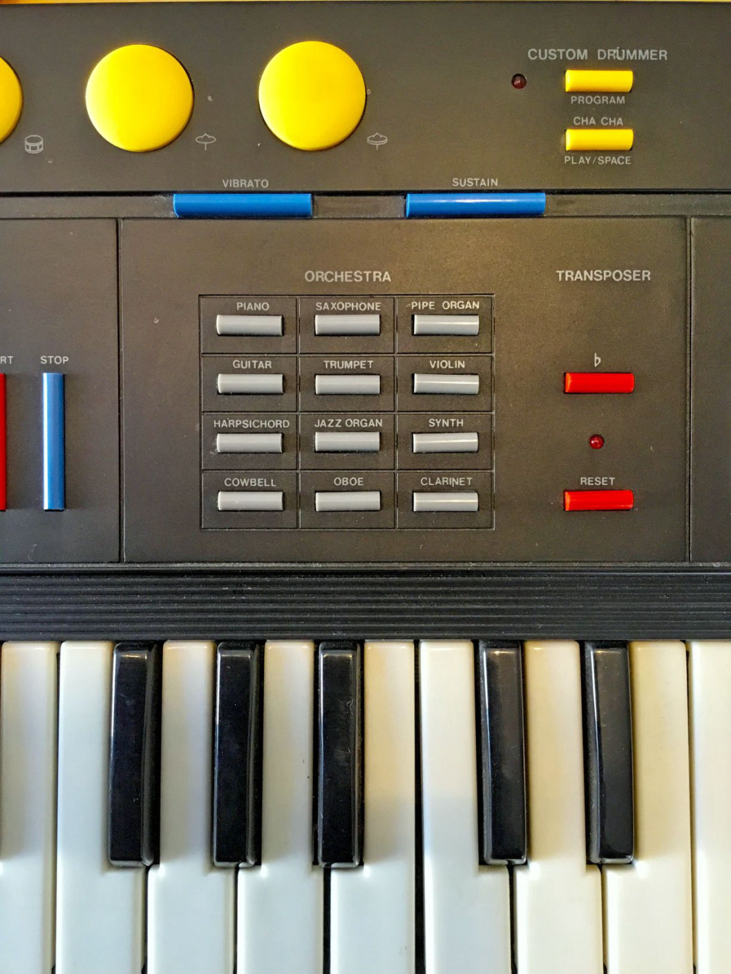 The MC-3A electronic keyboard is a digital square wave instrument. I don't know exactly how old it is but my guess is that it's roughly from the 1990's. It has 12 chromatic sounds: