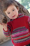 If the child you’re knitting for doesn’t fit into the average size for the age-based category, choose the size approximately 2 ½ (4 ¾, 5 ¾, 7 ½)(7 ¼, 7 ¼, 7 ¼)" / 6.5 (12, 14.5, 19)(18.5, 18.5, 18.5) cm larger around than the child’s chest circumference measured under the arms.
