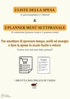 2 PLANNER LISTA DELLA SPESA + 2 PLANNER MENU' SETTIMANALE + 1 RICETTA