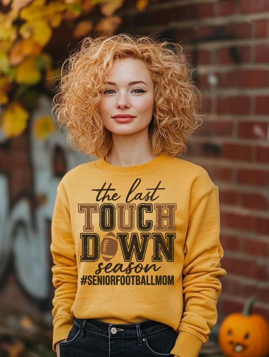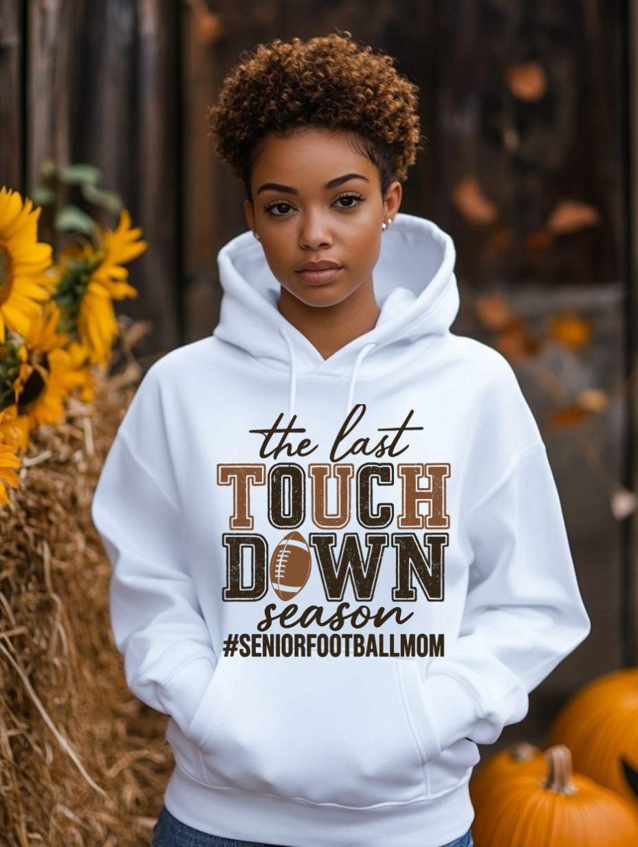 🏈✨ Honor senior year with this Last Touchdown Season PNG—perfect for proud football moms cheering on their athletes one last time under the Friday night lights! This high-resolution sublimation file is great for t-shirts, hoodies, tumblers, and more.