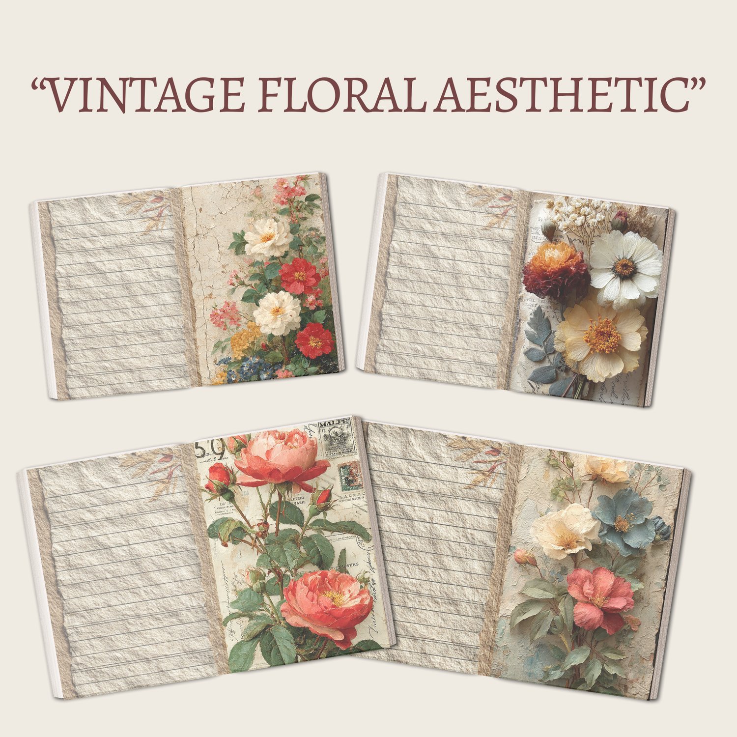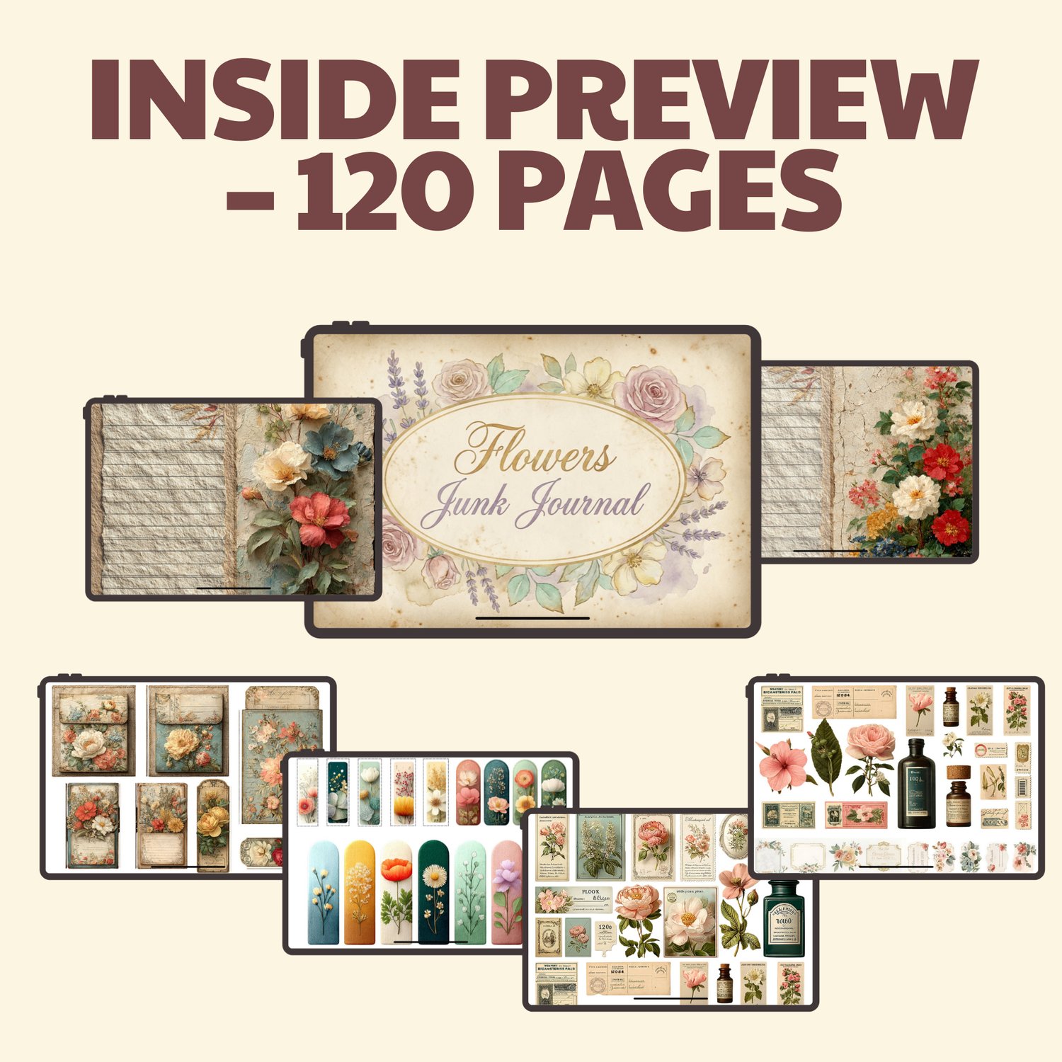 Floral Junk Journal – 120 Vintage & Watercolor Floral Pages | Printable Digital Journal