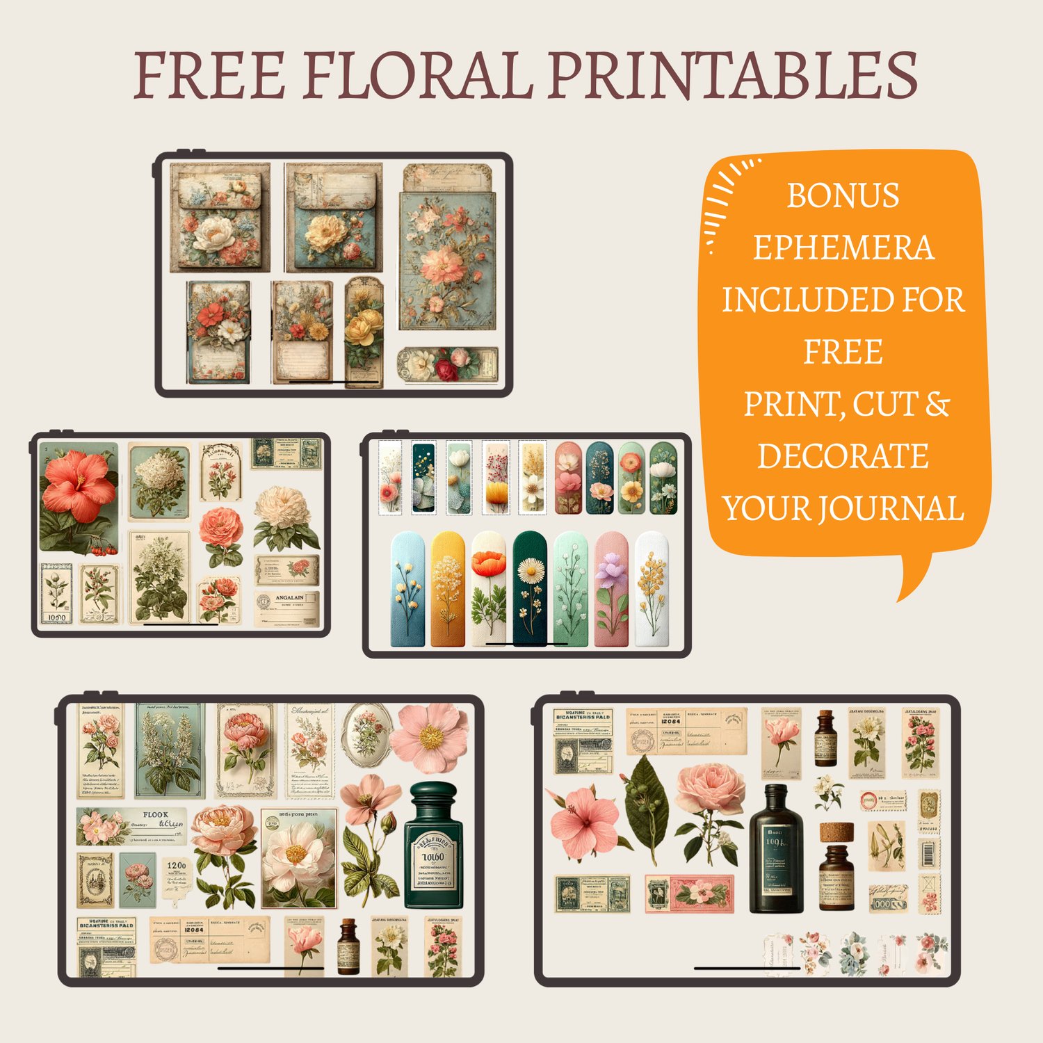 ✔ Printable floral ephemera (FREE bonus)