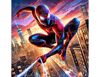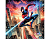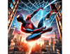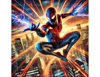 - 5 Unique Spider Superhero PNG Images featuring dynamic poses like swinging through the city, climbing skyscrapers, shooting webs, and more!