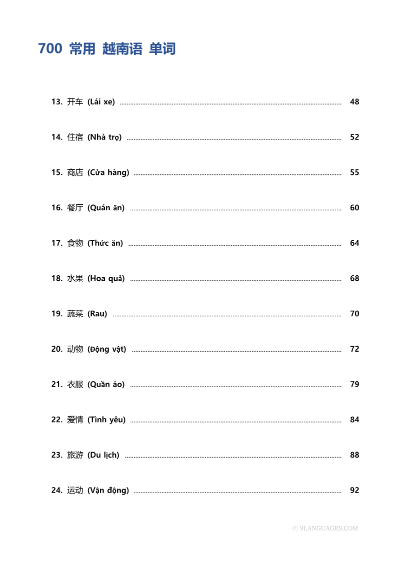 700 常用 越南语 单词 [PDF]