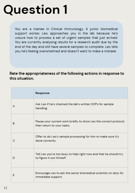 This is the complete guide to the Situational Judgment Test for the UK Scientific Training Programme 2026. The aim of the guide is to provide prospective applicants with advice on how to approach SJT questions and a complete practice paper comprised of 25 scenarios (made specific to STP students and a strong reflection of the real exam) with a worked through answers section of the 130 responses.