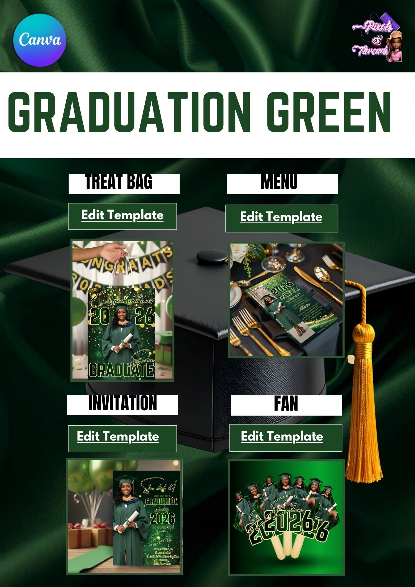 π Graduation Green Canva Template Bundle (PLR Included)