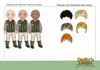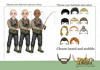 three different skin tones, three eye colours and six hair colours for men five for boys)