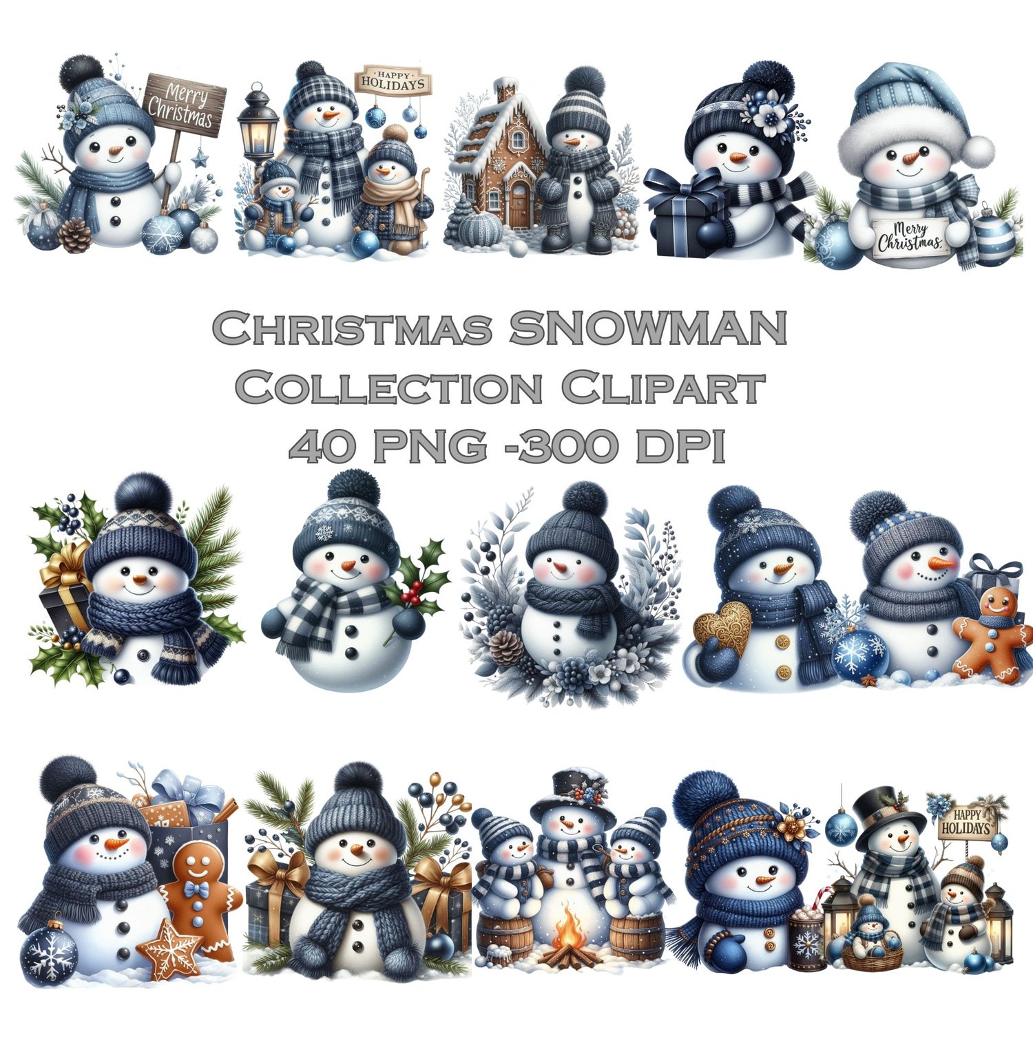 Christmas Snowman Family Clipart Bundle |40 Watercolor PNG Winter Illustrations |Cute Holiday Snowman Art for Cards, Stickers & Sublimation