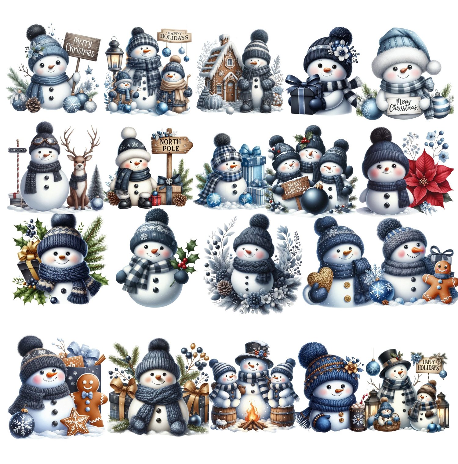 ⛄ Christmas Snowman Family Clipart Bundle – 20 Watercolor PNG Illustrations