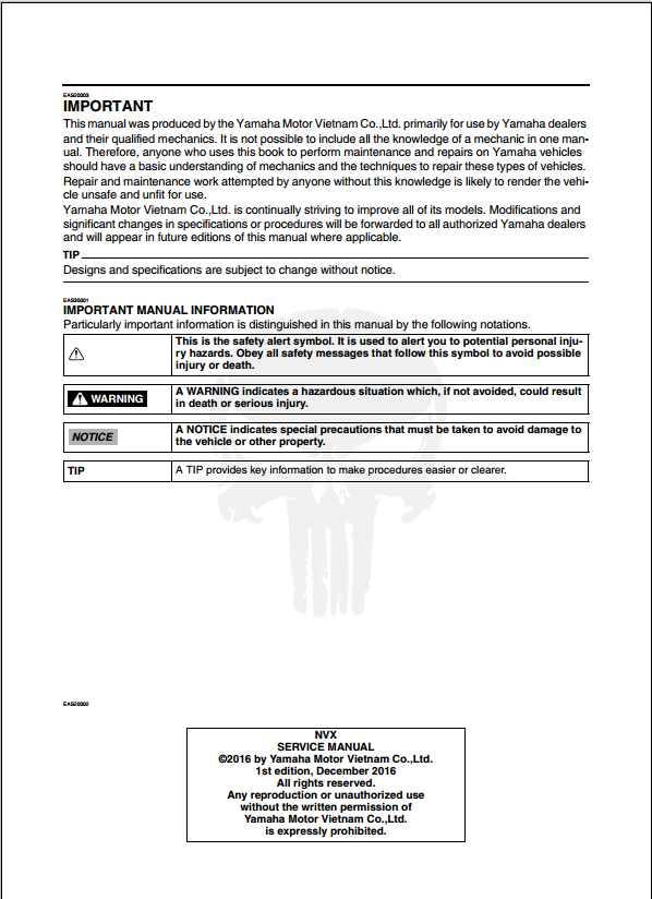 2017-2021 Yamaha NVX GDR155 GDR155-A Service Manual Part No. B63-F8197-EZ