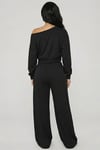 Effortless French Terry Off‑Shoulder Lounge Set Soft, cozy, and effortlessly chic. This ultra‑soft French terry two‑piece features a flirty off‑the‑shoulder top with dropped shoulders and flowy high‑waisted wide‑leg pants for a lengthened, relaxed silhouette. Perfect for lounging, errands, or elevated off‑duty style.