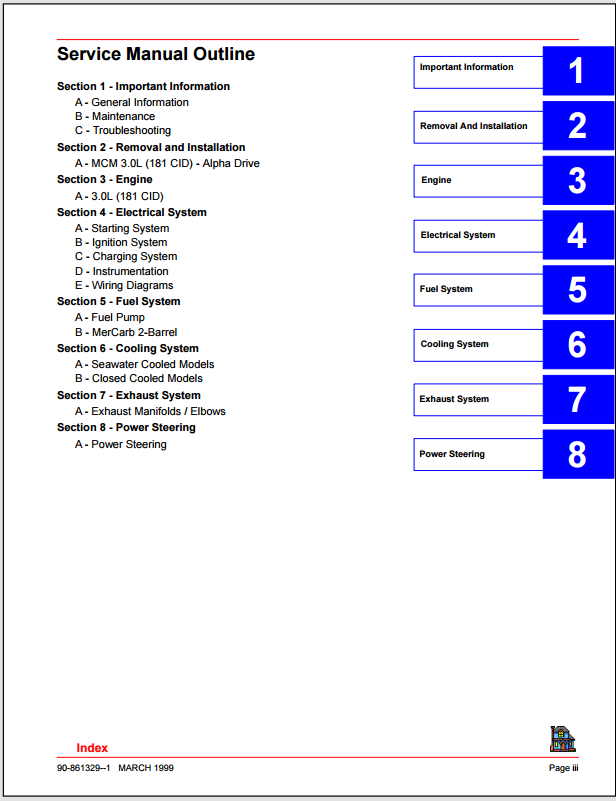 1999 Mercury Mercruiser Service Manual Number 26 Marine Engines GM 4 Cylinder 181 CID (3.0L) .pdf download